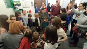 Ravi des chansons que les enfants lui ont interprétées, le Tio leur a offert des jouets et des bonbons. Il nous a déjà dit qu'il reviendrait l'année prochaine et qu'il adorait les clémentines !